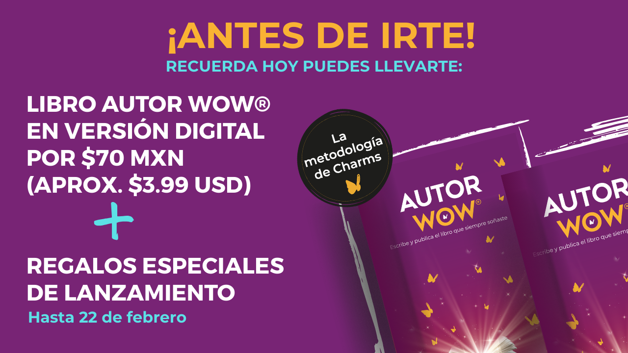 ¿Ya te imaginaste pasando de la emoción de escribir un libro a la emoción de tenerlo en tus manos? ¡Yo sí! Estoy feliz de acompañarte hacer realidad ese sueño a través de mi metodología Autor WOW®: crea tu mensaje, escribe tu manuscrito y publica tu libro de manera independiente. Si quieres empezar, pero no sabes cómo; si tienes una idea, pero no logras superar el bloque; si has avanzado, pero aún buscas cómo terminar y publicar, y, sobre todo, si anhelas experimentar lo que se siente tocar el corazón de otras personas con tus palabras, ¡te doy la bienvenida a este libro! Aquí encontraras guía, inspiración y herramientas para que esa historia que vive en ti exista en el mundo como solo tú la puedes contar.