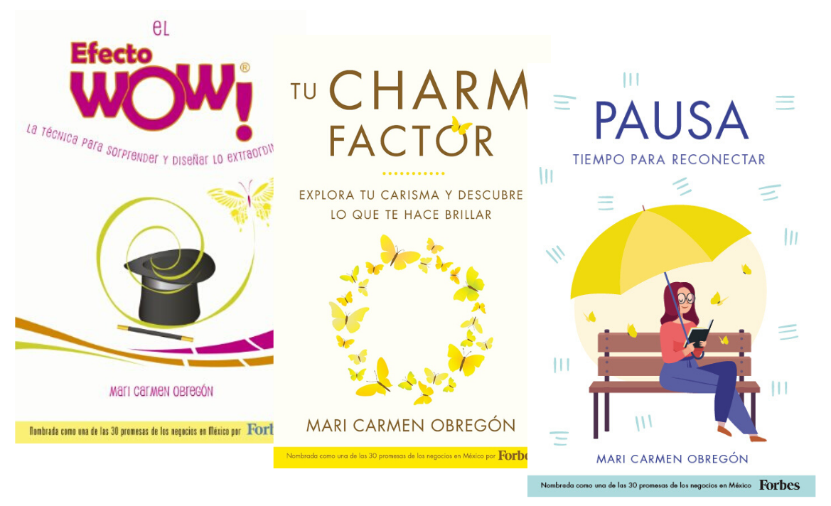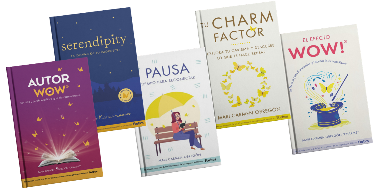 Mis libros son: "El Efecto WOW®", "Tu Charm Factor", "Pausa", "Serendipity" y "Autor WOW® Escribe y publica el Libro que siempre soñaste". :)